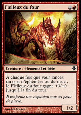 À chaque fois que vous lancez un sort d'éphémère ou de rituel, le Fielleux du four gagne +3/+0 jusqu'à la fin du tour.