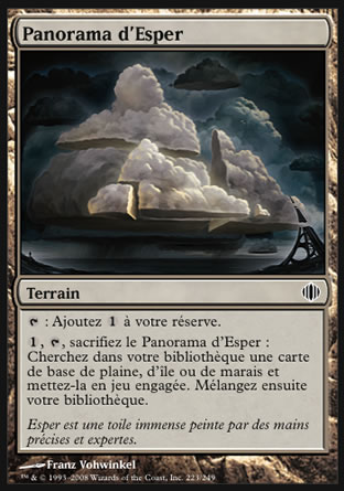 Le saviez-vous ? Les cinq cartes Bant Panorama, Esper Panorama, Grixis Panorama, Jund Panorama et Naya Panorama, de l'édition Shards of Alara, forment un cycle de terrains appelé "Panorama". Les couleurs produites par les trois terrains de base que chacun de ces terrains permet de "fetcher" sont celles rattachées aux éclats d'Alara, respectivement : Bant, Esper, Grixis, Jund et Naya. Ce cycle a inspiré des cycles similaires, parus dans les éditions Streets of New Capenna et Modern Horizons III (voir respectivement cette anecdote et celle-ci). |