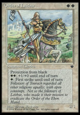 Le saviez-vous ? Les cartes Order of the White Shield et Knight of Stromgald (respectivement réimpressions fonctionnelles de Order of Leitbur et Order of the Ebon Hand, à part pour le type de créature) forment une paire miroir.