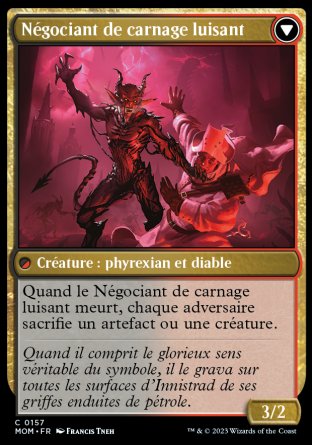Le saviez-vous ? Les cinq cartes Tarkir Duneshaper, Order of the Mirror, Aetherblade Agent, Pyretic Prankster et Bonded Herdbeast, de l'édition March of the Machine, forment un cycle de créatures pouvant chacune se transformer en Phyrexian avec une couleur alliée.