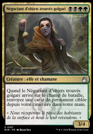 Quand le Négociant d'objets trouvés golgari arrive, renvoyez une carte de permanent ciblée depuis votre cimetière dans votre main.