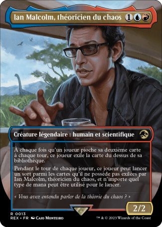 Pendant le tour de chaque joueur, ce joueur peut lancer un sort parmi les cartes qu'il ne possède pas exilées par Ian Malcolm, et n'importe quel type de mana peut être dépensé pour le lancer.