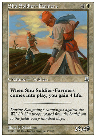 Quand les Shu Soldier-Farmers arrivent, vous gagnez 4 points de vie.
