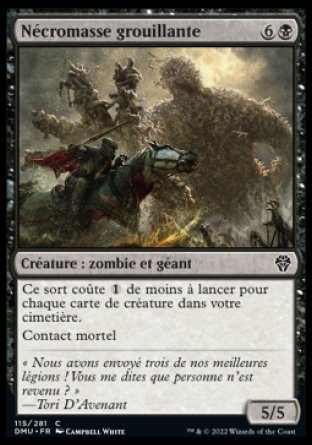 Ce sort coûte  de moins à lancer pour chaque carte de créature dans votre cimetière.