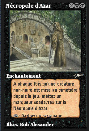 À chaque fois qu'une créature non-noire meurt, mettez un marqueur "cadavre" sur la Nécropole d'Azar.