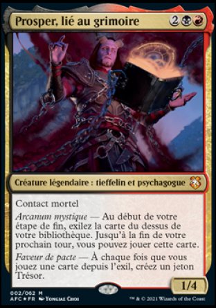 Contact mortel (N'importe quel nombre de blessures que cette créature inflige à une créature est suffisant pour la détruire.)Arcanum mystique — Au début de votre étape de fin, exilez la carte du dessus de votre bibliothèque. Jusqu'à la fin de votre prochain tour, vous pouvez jouer cette carte.