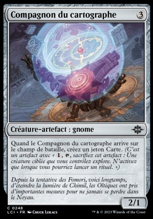 Quand le Compagnon du cartographe arrive, créez un jeton Carte (Une Carte est un artefact avec " , , sacrifiez cet artefact : Une créature ciblée que vous contrôlez explore. N'activez que lorsque vous pourriez lancer un rituel.").